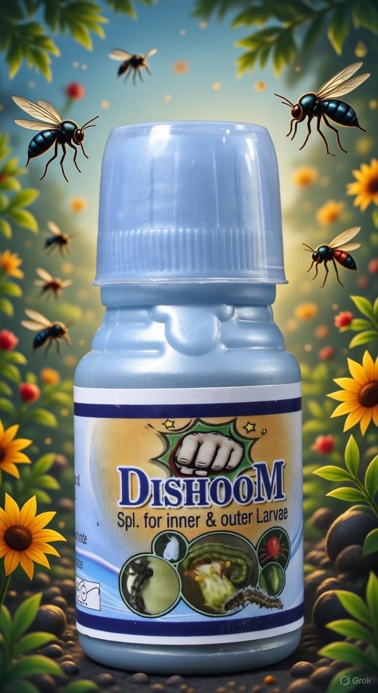 DISHOOM is a research-based organic product. It is made from extracts of selected plants, which are highly effective in controlling caterpillar pests and all types of borers that attack crops.