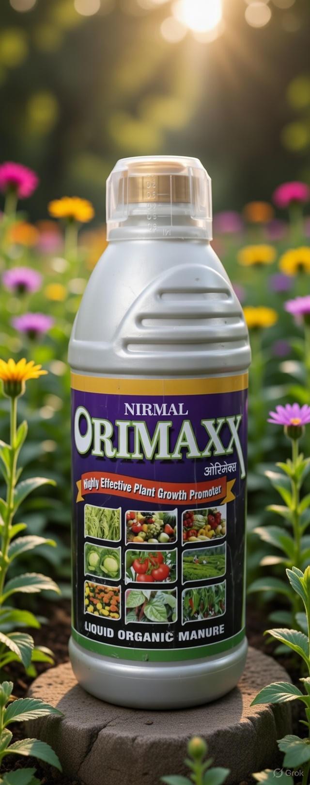 ORIMAXX by Nirmal Bio Agrotech is a high-quality biological plant growth regulator designed to enhance crop growth, prevent flower drop, and improve overall yield. Enriched with humic acid, fulvic acid, amino acids, gibberellic acid, magnesium, zinc, copper, and NPK nutrients, ORIMAXX strengthens plants, promotes branching, and can help double crop yield in optimal conditions. Suitable for all crops, it supports both vegetative and reproductive growth stages effectively.